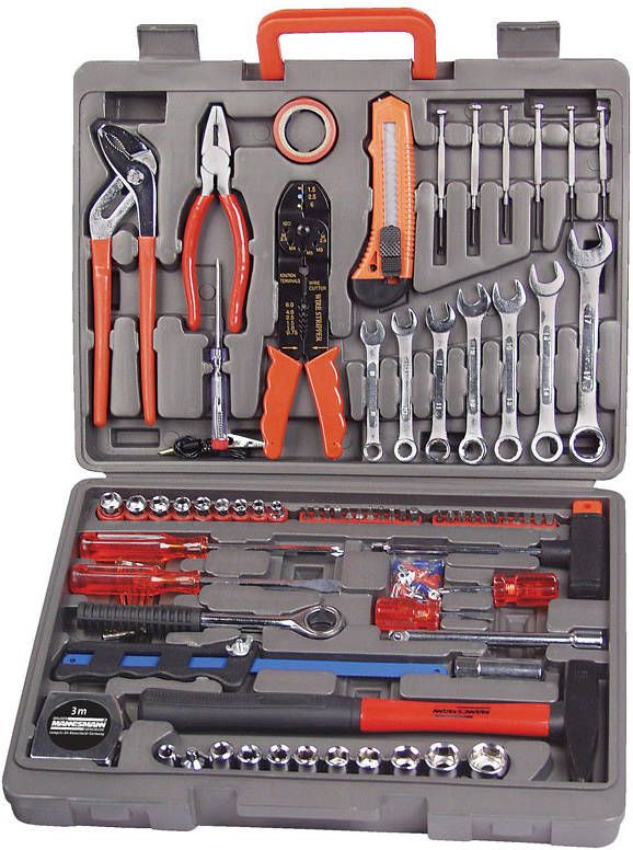Deze uitgebreide 555-delig handgereedschapset van Brüder Mannesmann is een handige toevoeging aan ieder huishouden.
