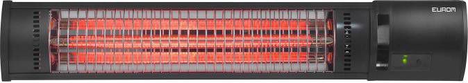 De Eurom Golden 1500 Shadow is een terrasverwarmer met een 1500 Watt Golden Shadow lamp. Deze lamp straalt minder licht uit dan andere lampen, maar zorgt toch voor een heerlijke warmte op het terras. Deze warmte verwaait nauwelijks, wat de Golden 1500 Shadow zeer geschikt maakt voor een open terras.De Golden 1500 Shadow komt met een afstandsbediening, die op meerdere heaters tegelijk gebruikt kan worden. SpecificatiesBediening: afstandsbedieningIsolatieklasse: IP65Lamp: Golden ShadowMontage: wandKleur: zwartOmkasting: kunststof, aluminiumAandrijving: elektrischAansluitspanning: 220-240/50 V/HzVermogen: 2000 WVermogensselecties: 2Afmeting: 12,6 x 72,4 x 11,1 cmElektrokabel: 185 cmGewicht: 2,4 kg.